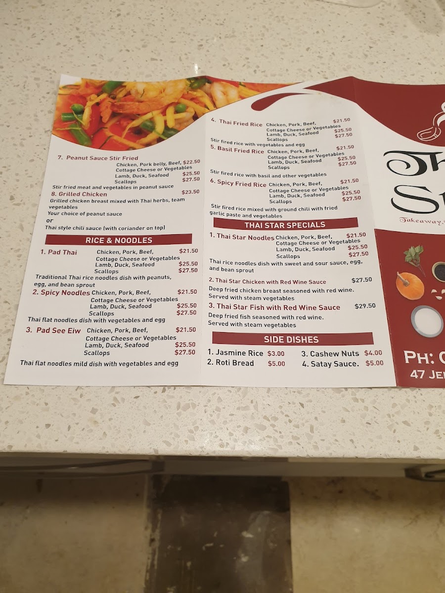 Welcome to Thai Star Restaurant & Bar, an authentic gem nestled in Te Puke. Located at 47 Jellicoe Street, this delightful Thai eatery offers a diverse menu that is sure to tantalize your taste buds. Start your culinary journey with tempting entrees like the crispy Spring Rolls or the flavorful Curry Puffs, both priced at NZ$10.00. For those craving something heartier, their signature Tom Yum Soups feature aromatic herbs paired with succulent chicken or prawns, priced at NZ$25.00 and NZ$28.50 respectively. Dive into vibrant salads, including the refreshing Chicken Salad loaded with herbs and dressed in zesty Thai lime at NZ$27.00. Customers rave about the warm atmosphere and attentive service, making it an excellent choice for intimate dinners or casual meals. Try Thai Star—where every dish celebrates the rich flavors of Thailand. Come join us for a memorable dining experience!